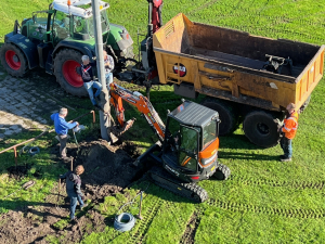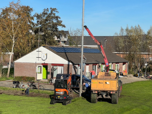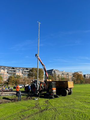 Met bijzondere dank aan onze geweldige vrijwilligers, het mooie weer, AMF Metselbedrijf, Ralph Lely Groenvoorziening en aannemersbedrijf Rulo uit Wassenaar voor het ter beschikking stellen van hun zware materiaal en minstens even gewichtige vakkundigheid bij het plaatsen van de masten en het graven van de geulen voor de elektriciteitskabels.