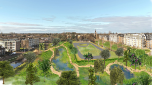 Er wordt hard gewerkt aan een klimaat-adaptief sport- en groenpark met combibaan op het huidige ijsbaanterrein.
